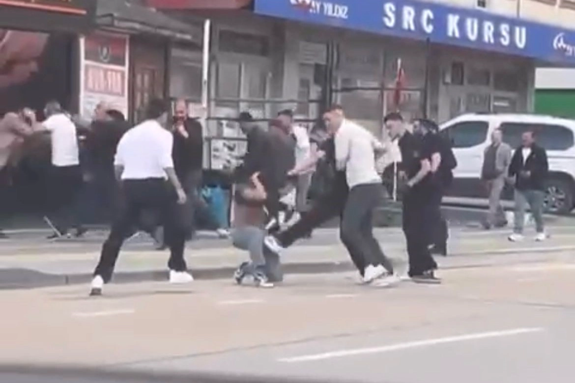 Arbede kısa sürede kavgaya döndü. Olay yerinde bulunan polis ekipleri, kavgayı havaya silah sıkarak ayırdı. O anlar saniye saniye amatör kamera ile kaydedildi.