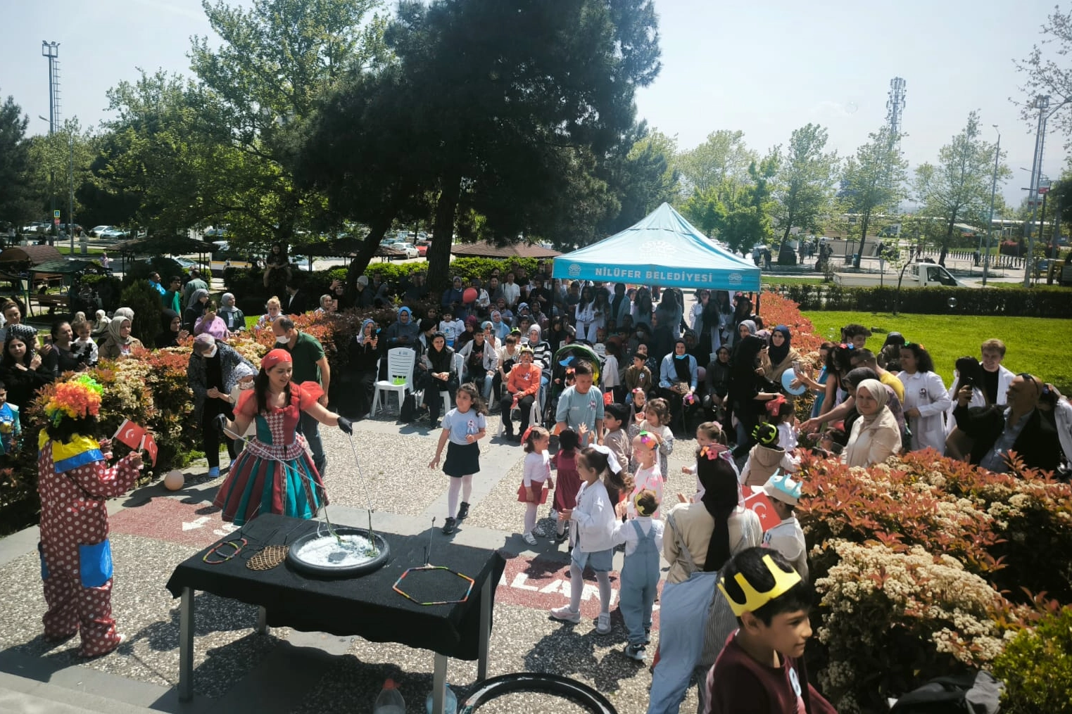Balon show ile keyifli zamanlar geçiren, Karagöz & Hacivat gösterisi ile bol bol kahkaha atıp eğlenen, Ercin Cacan ile zumba yapıp müziklerle dans eden, yüz boyamaları yaptıran ve Uludağ Üniversitesi Öğrenci Topluluklarından Renkli Gülücükler ekibinin balonları ile renklenen organizasyonda çocuklar Uzay Pastanesinin kendileri için hazırlanan özel 23 Nisan pastasını da hep birlikte kestiler.