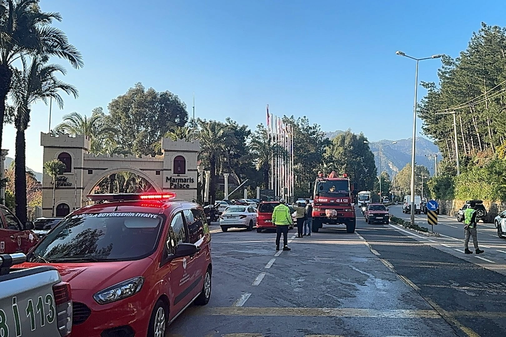 Yangın, Marmaris-İçmeler yolu üzerinde bulunan 5 yıldızlı otelde sabah saat 05.58’de meydana geldi.