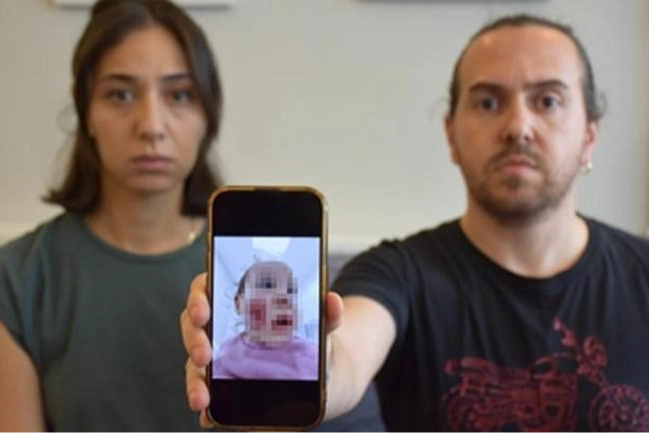 Buse Altıparmak, eşi Onur Altıparmak ile kızını hastaneye götürdü. Çift daha sonra savcılık talebiyle ulaştıkları güvenlik kamerası görüntülerinde, bebeklerinin kreşteki yaşı daha büyük iki çocuk tarafından darbedildiğini gördü.