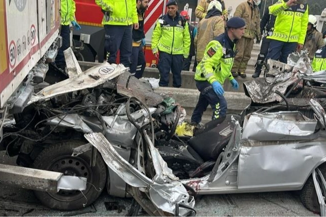 İstanbul'da Pendik Kurnaköy gişeler mevki Ankara istikametinde otomobil TIR'ın altına girdi. İhbar üzerine olay yerine polis itfaiye ve sağlık ekibi sevk edildi.