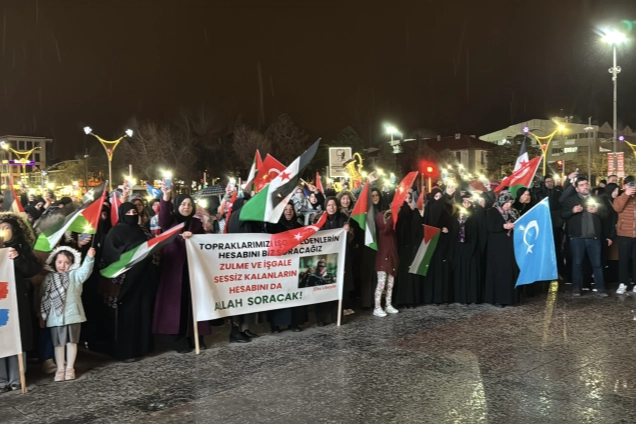 Erzincan’da ise ellerindeki Türk ve Filistin bayraklarıyla Kızılay Meydanı’nda toplanan vatandaşlar, İsrail aleyhine slogan atarak tekbir getirdi.