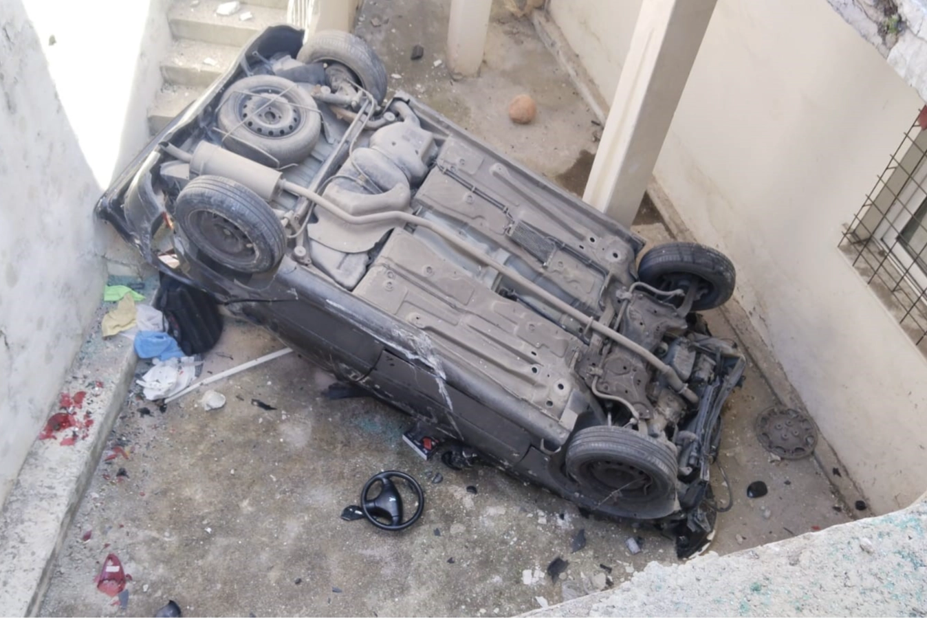 Kaza, saat 13.30 sıralarında, Cumhuriyet Mahallesi Alim Dağhan Caddesi'nde meydana geldi. B.D. idaresindeki 35 CLR 852 plakalı otomobil, sürücüsünün direksiyon hakimiyetini yitirmesi sonucu kontrolden çıktı. Caddede park halindeki 35 FT 850 plakalı otomobile ardından binanın korkuluk demirlerine çarpan daha sonra da korkuluk demirlerini yıkan otomobil, 5 metreden apartman boşluğuna düştü. Kazayı görenler, durumu sağlık ve polis ekiplerine bildirdi. İhbar üzerine kaza yerine gelen sağlık ekipleri, yaralıyı ambulansla, Çiğli Eğitim ve Araştırma Hastanesi'ne kaldırdı. Tedaviye alınan yaralının hayati tehlikesinin bulunduğu belirtildi. Kaza anı kamerada