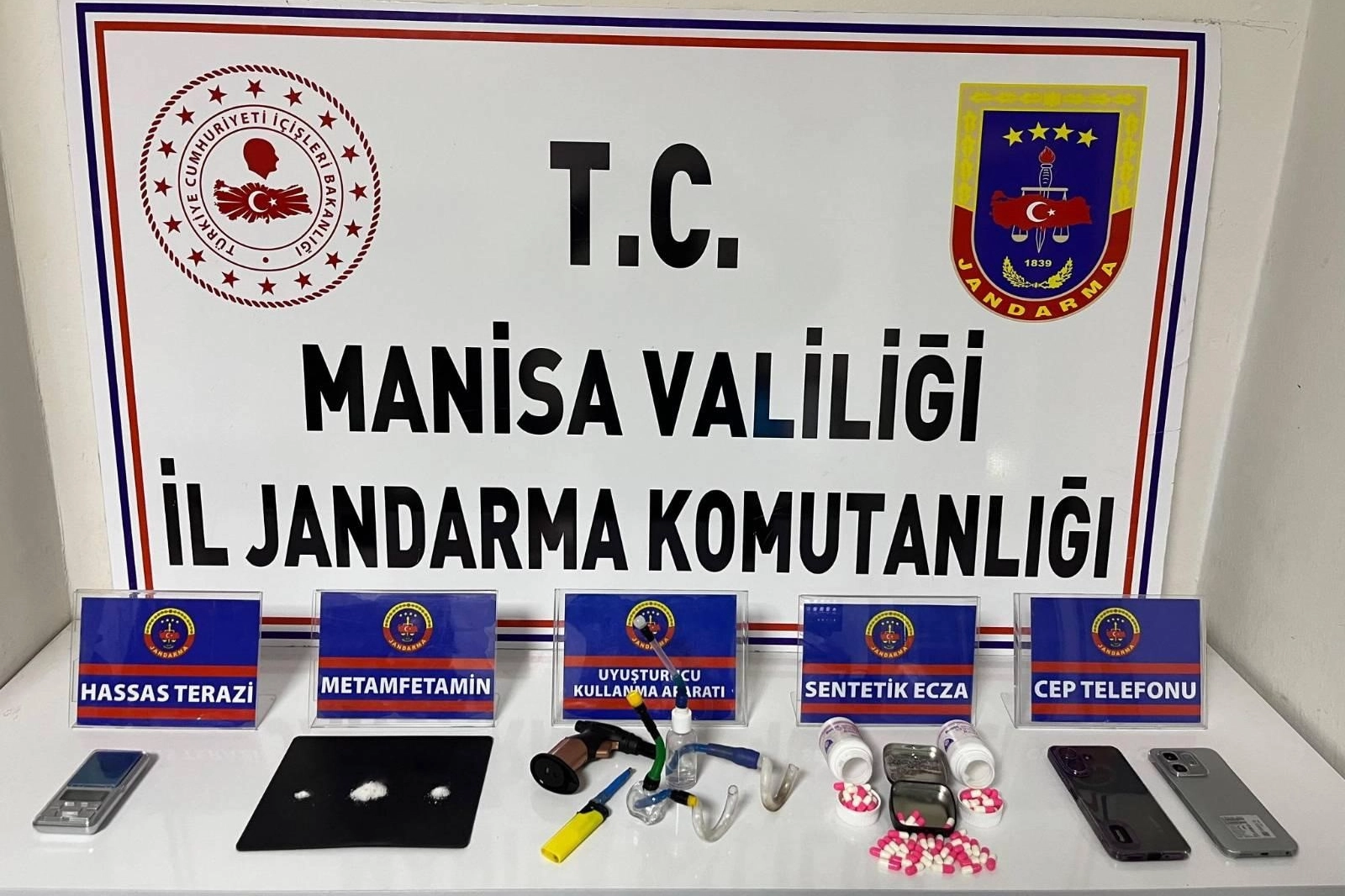 Sorumluluk bölgesinde uyuşturucu veya uyarıcı madde ticareti yapan, nakleden ve kullanan şahıslara yönelik çalışmalarını sürdüren Manisa İl Jandarma Komutanlığına bağlı Salihli İlçe Jandarma Komutanlığı ekipleri, Salihli Cumhuriyet Başsavcılığı koordinesinde Durasıllı Mahallesi’nde uyuşturucu operasyonu düzenledi. Operasyonda M.A.C. (42) ve A.Ö.Ü.’ye (25) ait ikamette arama yapıldı. Yapılan aramada 3 parça halinde 10 gram Metamfetamin, 2 adet uyuşturucu kullanma aparatı, 1 adet hassas terazi, 61 adet uyuşturucu hap ile şüphelilere ait 2 adet telefon ele geçirilirken, 2 şüpheli gözaltına alındı.