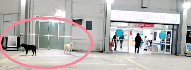 "20 Şubat Perşembe saat 20:30. Yakınımız için Uludağ Üniversitesi Tıp Fakültesi Hastanesi'ne gittik. Acil Servis kapısı önünde bizleri bir köpek sürüsü karşıladı. Çok korktuk.