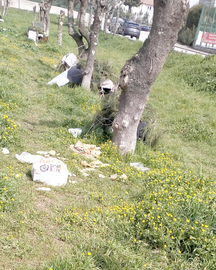 Burada ağaç dipleri köpek-kedi kulübeleriyle doldu. Her ağacın altında kulübe var. Getirilip yiyecek maddeleri de etrafa yayıldığı için yeşil alan çöplük gibi.