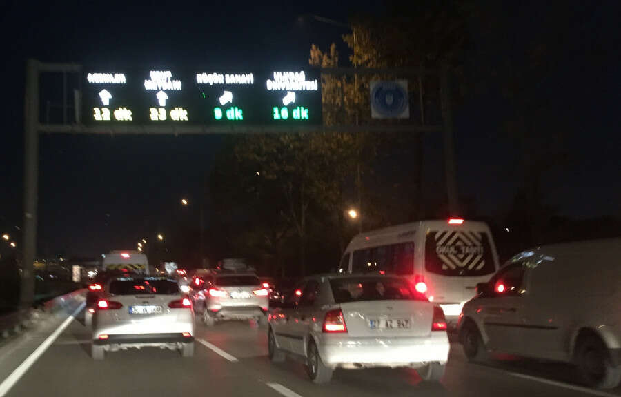 Özellikle mesai saati sonrasında Bursa'da şehir içi trafik kilitlenme noktasına gelirken, bir yerden bir yere mesafe dakikasını gösteren bu cihazların doğru bilgi vermediği görülüyor.