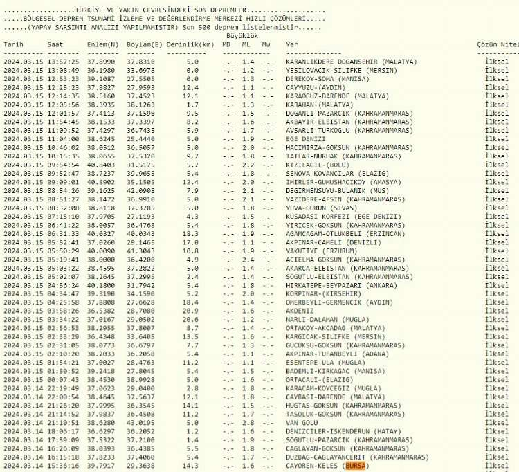 AFAD ve Kandilli açıkladı: Bursa'da deprem mi oldu? Bursa deprem listesi (15 Mart 2024)
