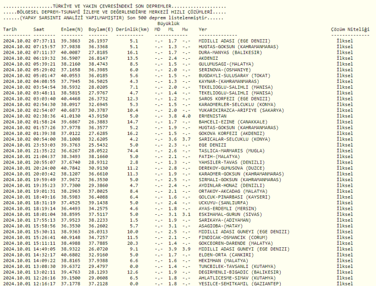 İŞTE BURSA'DAKİ SON DEPREMLERİN LİSTESİ... (2 Ekim 2024)