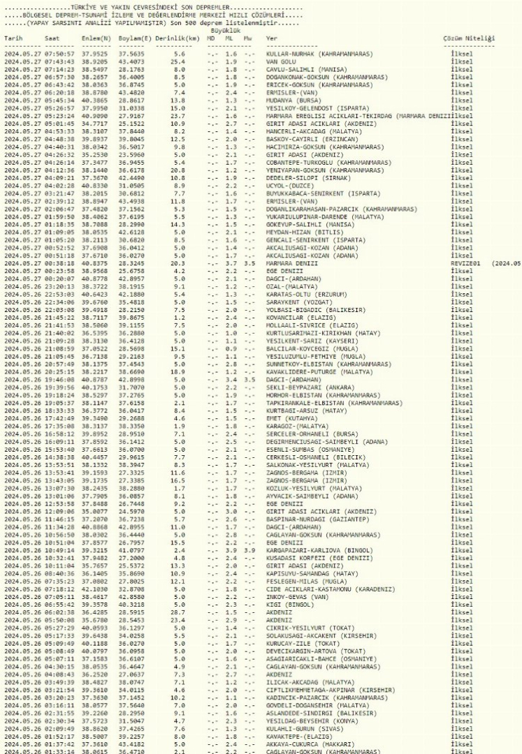 İŞTE BURSA'DAKİ SON DEPREMLERİN LİSTESİ... (27 Mayıs 2024)