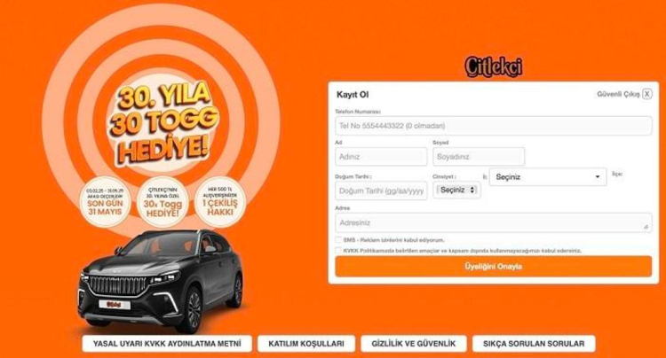 Çitlekçi TOGG kampanyasına katılan müşteriler, alışveriş fişleri veya dijital başvurular aracılığıyla çekilişe dahil oldu. Başvuru süreci, 3 Şubat 2025 tarihinde başladı ve 31 Mayıs 2025 tarihi itibarıyla sona erdi. TOGG kazanma şansı elde eden katılımcılar çekiliş tarihini beklemeye başladı.