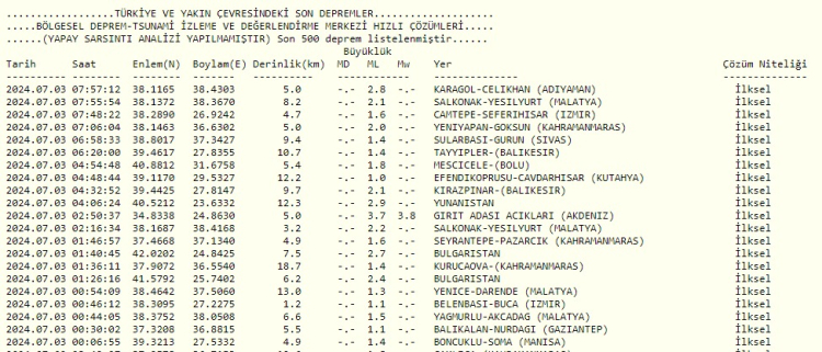 İŞTE BURSA'DAKİ SON DEPREMLERİN LİSTESİ... (3 Temmuz 2024)
