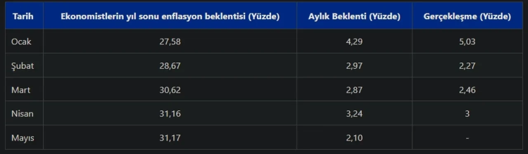 MAYIS AYI ENFLASYON BEKLENTİSİ 2025 YÜZDE KAÇ?