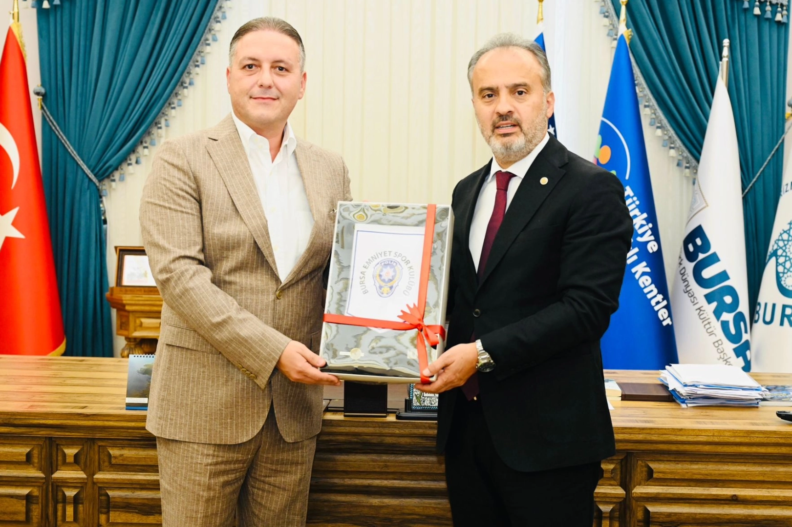 Ziyarette kulüp ve Büyükşehir Belediyesi’nin çalışmaları hakkında bilgi alışverişinde bulunuldu. Kulüp Başkanı Erkan Yılmaz, Bursa Büyükşehir Belediye Başkanı Alinur Aktaş’a üzerinde isminin yazılı olduğu 16 numaralı Bursa Emniyet Spor formasını hediye etti.