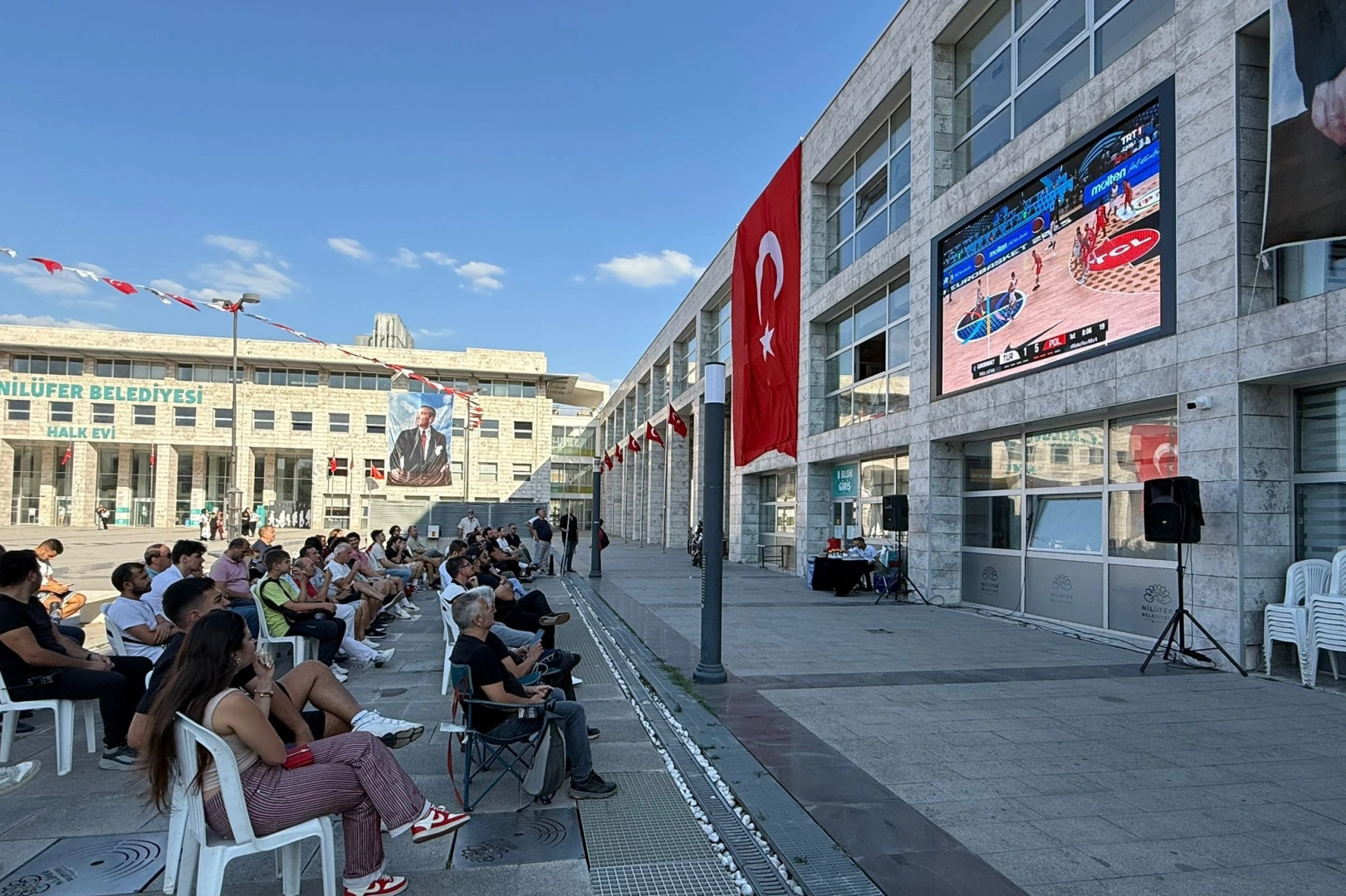 Tüm Türkiye’de olduğu gibi Bursa’da da çeyrek final heyecanını vatandaşla bir arada yaşamak için Nilüfer Belediyesi, Halk Evi önünde dev ekran kurdu.