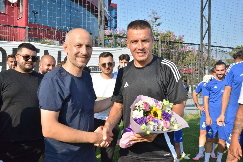 Taraftarlar; Teknik Direktör İsmail Güldüren’e çiçek vererek yeni sezon öncesi başarı dileğinde bulundu.