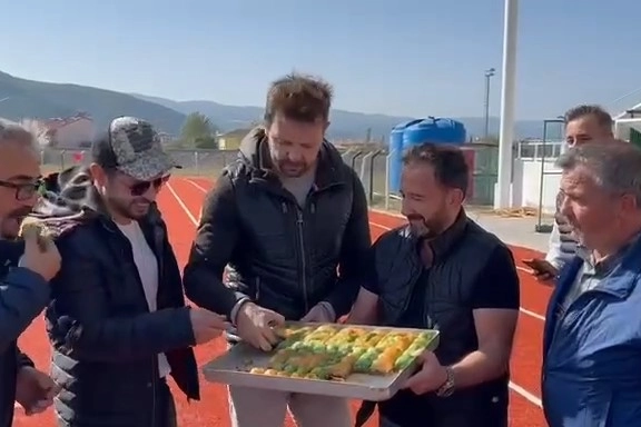 Ünlü oyuncu daha sonra İznikspor idmanını ziyaret ederek oyunculara baklava ikramında bulundu.