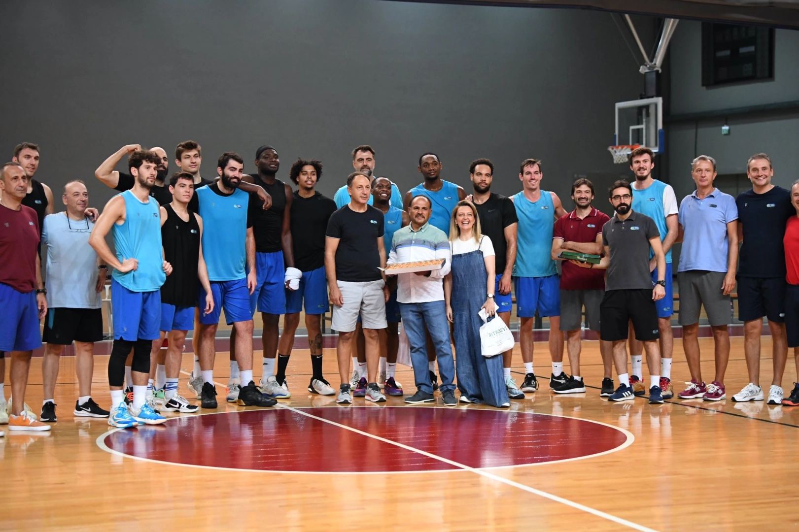 Fıstıkbeyi Baklava sahibi Nurettin Yalçın ile Marka ve İletişim Danışmanı Emel Bediz Gürsoy, Genel Menajer Tolga Öngören ve başantrenör Orhun Ene’ye yeni sezonda başarılar diledi.