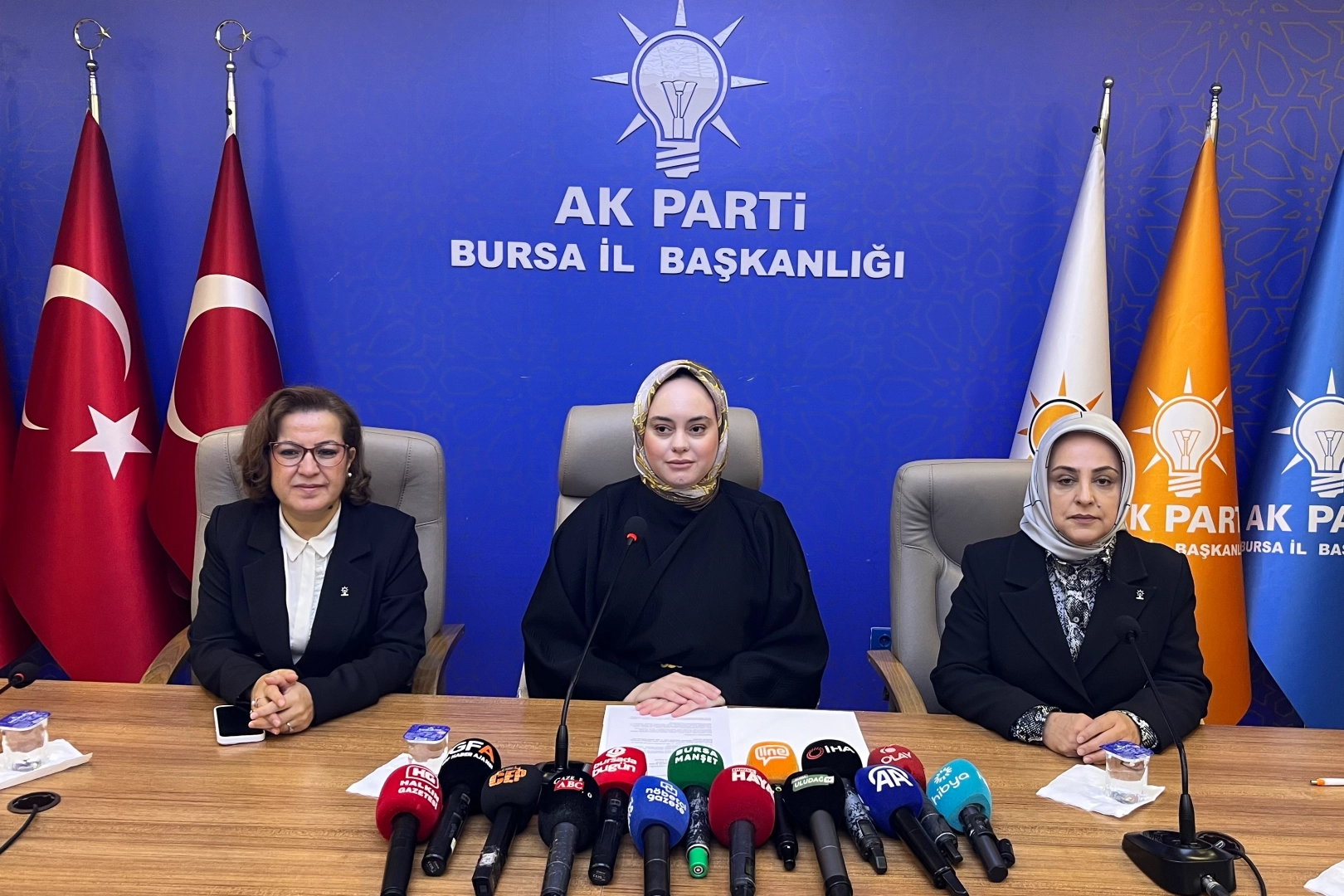 AK Parti Bursa İl Başkanlığı, '25 Kasım Kadına Yönelik Şiddetle Mücadele Günü' çerçevesinde kadın üyeler ve vatandaşlarla bir araya geldi. AK Parti Bursa Kadın Kolları Başkanı İmren Çavuşoğlu, yaptığı basın açıklamasında kadına yönelik şiddetin asla ve asla kabul edilemez bir insanlık suçu olduğunu söyledi.