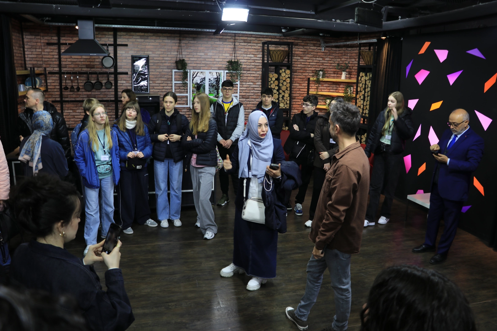 Projeye 8 öğrenci ve bir öğretmenle Bursa Anadolu Lisesi'nin de ortak olduğunu ifade eden Akpınar, Hamitler TOKİ Mesleki ve Teknik Anadolu Lisesi'ni ziyaret eden yabancı misafirlerin okulun radyo ve televizyon alanında eğitim aldığını aktardı.