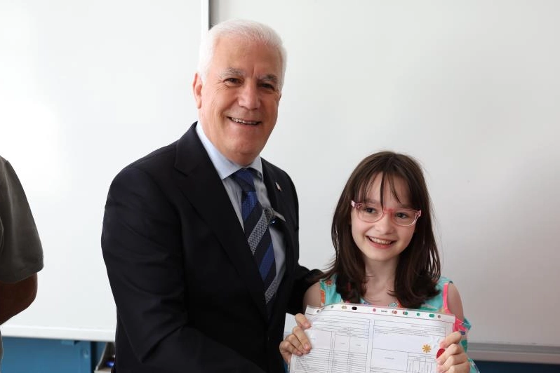 Öğrencilerle sohbet eden ve karnelerini veren Başkan Mustafa Bozbey, velilere de tavsiyelerde bulunarak notlar ne olursa olsun çocuklarının yanlarında olmalarını tavsiye etti. Karne alan tüm öğrencileri ve ailelerini tebrik eden Başkan Mustafa Bozbey, özel okullarda eğitim alan çocuklarla bilgilerini paylaşan öğretmenlere de teşekkür etti.