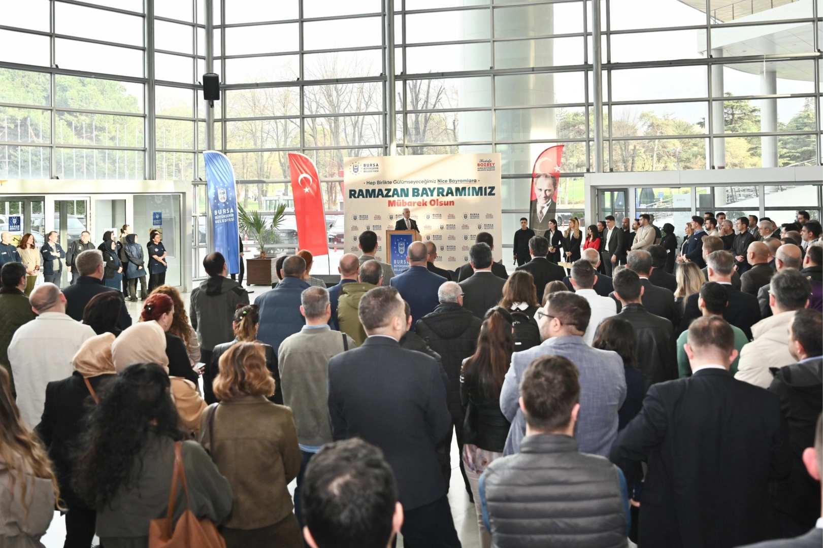Bursa Büyükşehir Belediye Başkanı Mustafa Bozbey, Büyükşehir Belediyesi, BUSKİ, BURULAŞ ve bağlı şirketlerin çalışanlarıyla bir araya gelerek bayramlaştı.