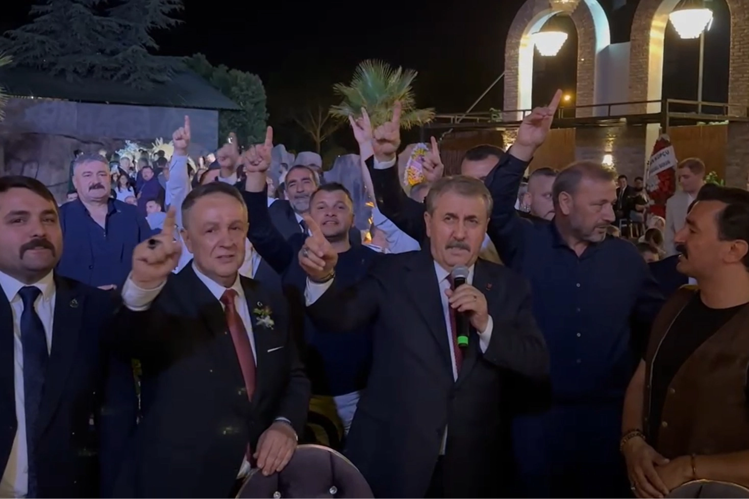 Nikah merasiminin ardından Genel Başkan Destici, nikah cüzdanını gelin hanıma teslim ederken, gecenin ilerleyen saatlerinde ‘Kerkük’ün Zindanı, Çırpınırdın Karadeniz ve Türkiye’m türkülerini söyledi.