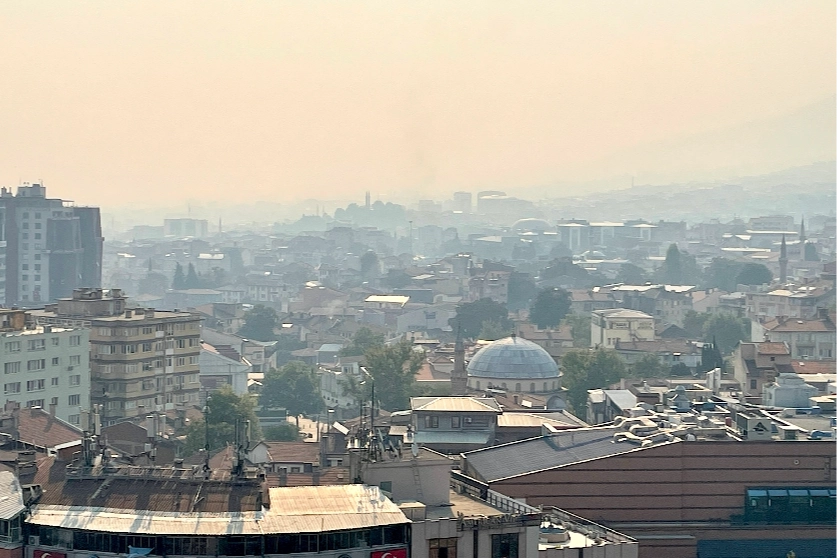 Geyve'nin Hacılar Mahallesi'ndeki ormanlık alanda 20 Temmuz'da çıkan, bir gün sonra Osmaneli sınırlarına sıçrayan ve söndürme çalışmaları devam eden yangın nedeniyle oluşan yoğun duman, Bursa kent merkezini kapladı.