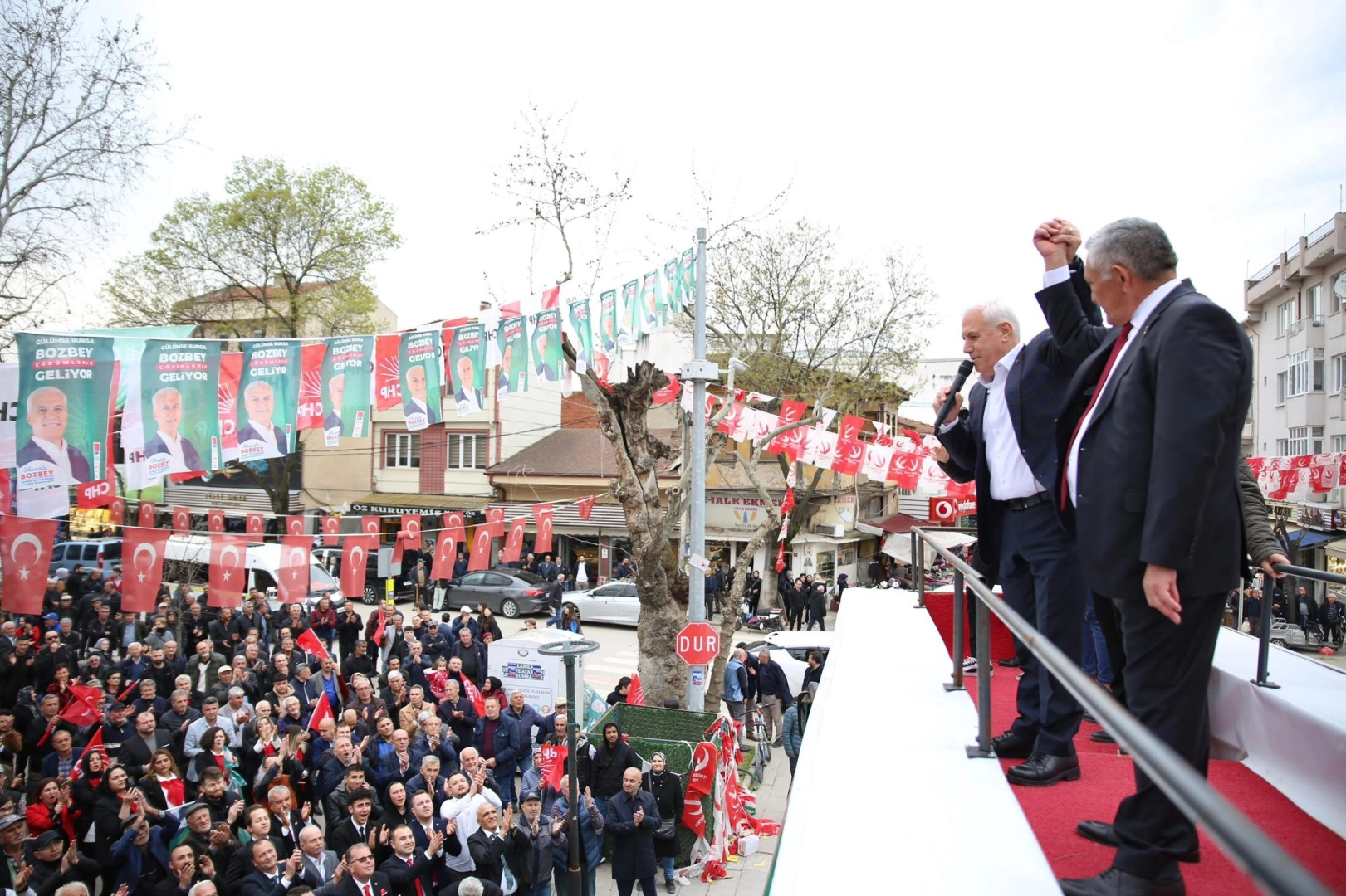 Bozbey’in Yenişehir Heykel Meydanı’nda gerçekleştirdiği halk buluşması ise mitinge dönüştü. Büyükşehir Belediye Başkanı Adayını görmek için meydana gelen binlerce Yenişehirli Bozbey’i büyük bir coşku eşliğinde karşılayarak sevgi gösterisinde bulundu. CHP Yenişehir Belediye Başkan Adayı Sadi Aktaş ile birlikte seçim otobüsünden halka konuşma yapan Bozbey, yoğun katılım ve şahsına teveccühten dolayı herkese teşekkür ederken Yenişehir’in sorunlarına dair 20 yıl boyunca Nilüfer Belediye Başkanlığı döneminde yaptığı hizmetleri 1 Nisan’dan sonra Yenişehir’e getireceğini söyledi.