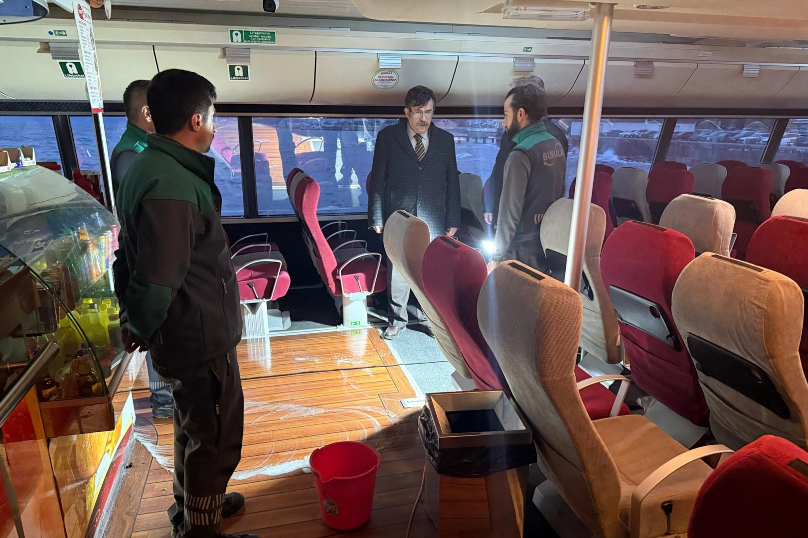 Aşırı kaba deniz koşullarında yolcularımızı salimen Mudanya İskelesine çıkarmayı başaran kaptan ve gemi mürettebatı ile buluşup durum değerlendirmesi yaptık. Yaşananları ve alacağımız ek tedbirleri konuştuk.