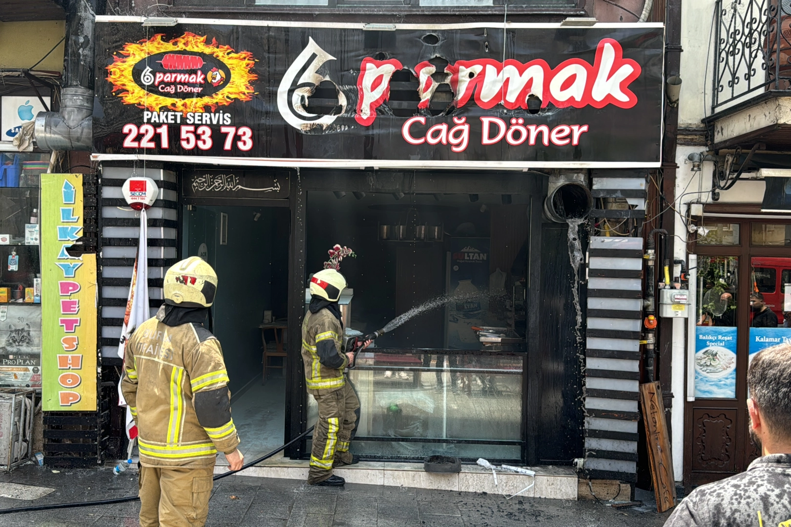 Altıparmak Caddesi'nde faaliyet gösteren bir dönerci dükkanının ocak bölümünde henüz belirlenemeyen nedenle yangın çıktı.