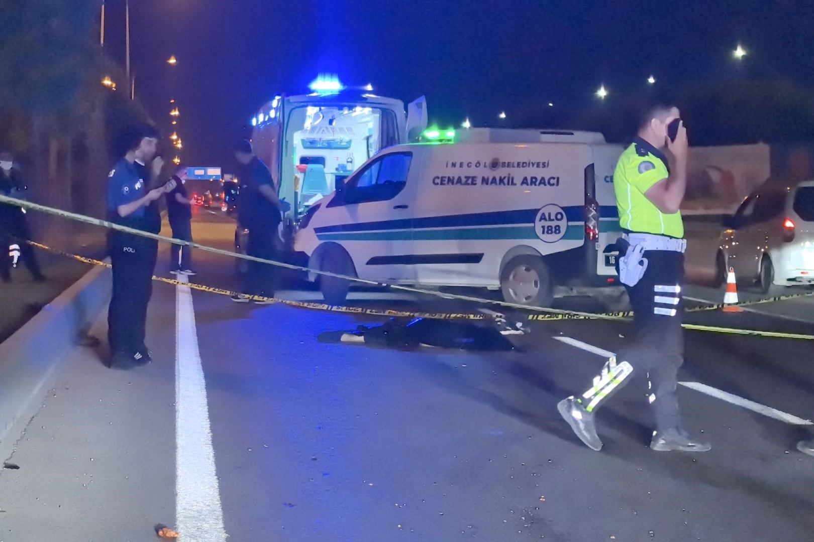 Kaza saat 23.30 sıralarında Bursa-Ankara Karayolu üzeri İnegöl girişinde meydana geldi. Ehliyetsiz ve geçtiğimiz yıl makineye sıkıştırması sonucu sağ kolunu kaybeden Muhammed Y. (14) yönetimindeki 16 BNN 523 plakalı otomobil, karayolundan karşıya geçmeye çalışan henüz kimliği belirlenemeyen erkek şahsa çarpıp 60 metre sürükledi.