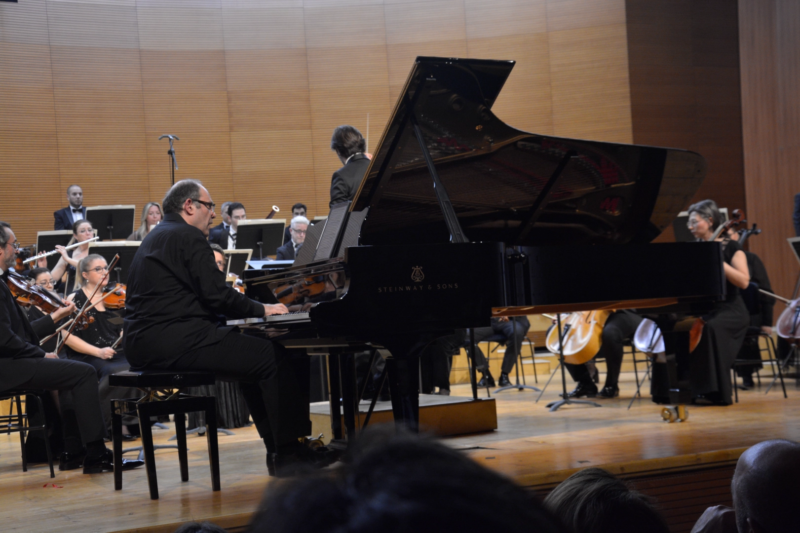 Merinos Atatürk Kongre ve Kültür Merkezi'nde düzenlenen, piyanist Muhiddin Dürrüoğlu'nun konuk olduğu konseri şef İbrahim Yazıcı yönetti.