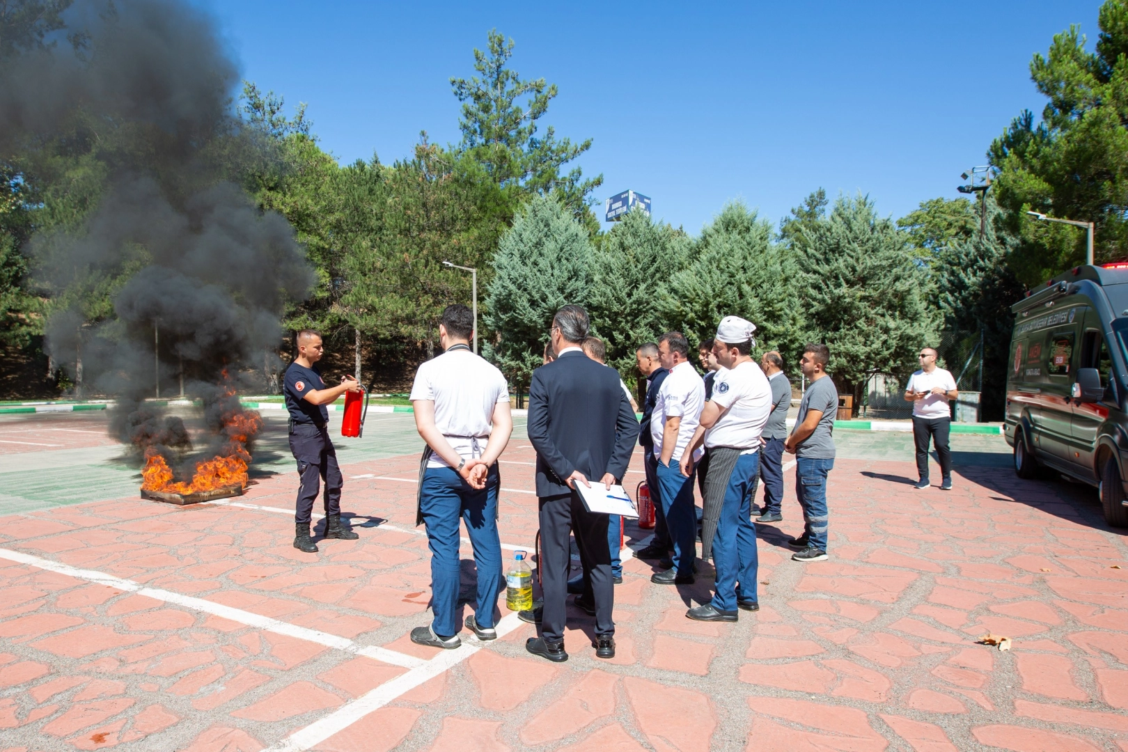 Tatbikatın ardından üretim alanı dışında bulunan bölgede tüm personele yangına müdahale eğitimi verildi. Eğitimde yangın çıkış sebepleri, ‘yangın türleri' ve ‘yangın söndürme' konularında bilgi verilirken, yangında kullanılan ekipmanlar uygulamalı olarak gösterildi.