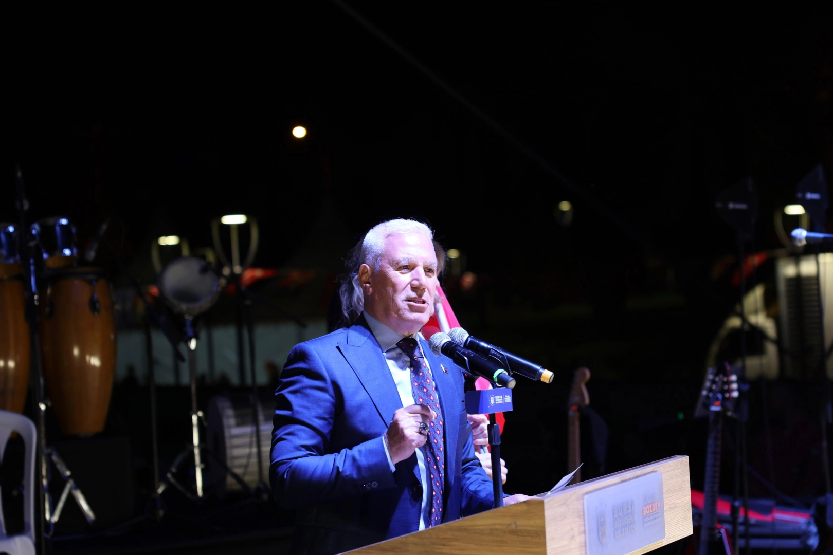 Cumhuriyetimizin kurucusu, Başkomutan Gazi Mustafa Kemal Atatürk’ü, silah arkadaşlarını, tüm milli mücadele kahramanlarını, şehitleri ve gazileri saygı ve minnetle anan Başkan Bozbey, kutlu mirasın yalnızca bir toprak olmadığını, onurlu bir yaşam olduğunu söyledi. Onların izinden yürüyerek bağımsızlık ateşini ve Cumhuriyetin ışığını sonsuza dek taşımaya kararlı olduklarını belirten Başkan Bozbey, “Bu zaferin bizlere öğrettiği çok net bir şey var. Bir milletin özgürlük aşkı varsa hiçbir zincir onu bağlayamaz. Bir milletin bağımsızlık tutkusu varsa hiçbir güç onu esir edemez. O milletin yolunu aydınlatan Atatürk gibi bir lideri varsa o yol, mutlaka zafer yoludur. Bugün bir kez daha hep birlikte gururla söylüyoruz ki; Atatürk’ün yolunda, Cumhuriyet’in izindeyiz. Ne mutlu ki bizlere, yüreklerimizi birleştiren bir zafer var. 30 Ağustos Zafer Bayramımız kutlu olsun” dedi. Konuşmanın ardından ünlü sanatçı Göksel sahne alarak sevilen şarkılarını Bursalılar için seslendirdi. Alanı dolduran on binlerce vatandaş, Göksel’in şarkıları eşliğinde bayram coşkusunu doyasıya yaşadı.