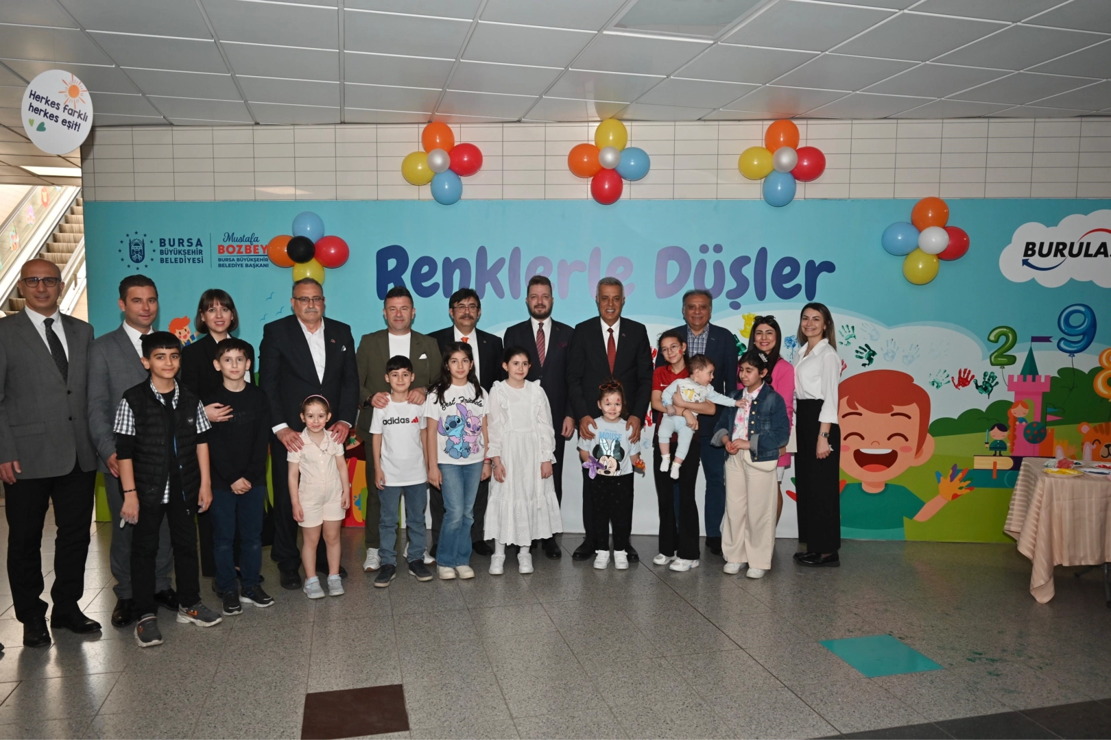 Bayraklarla ve balonlarla süslenen ‘Çocuk Dostu Metro İstasyonu’nun açılış törenine, Bursa Büyükşehir Belediyesi Başkanvekili Yalçın Işıkyıldız, Büyükşehir Belediyesi Genel Sekreter Yardımcısı Mehmet Yıldız, BURULAŞ Genel Müdürü Fahrettin Beşli, Büyükşehir Belediyesi yöneticileri, ilçe belediye yöneticileri, muhtarlar, çocuklar ve aileleri katıldı.
