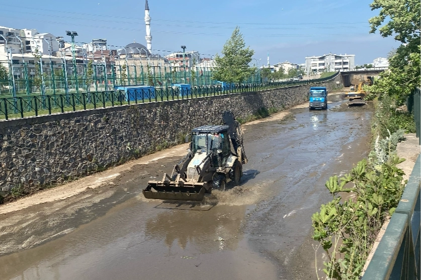 1600 metre uzunluğunda ve 15 metre genişliğindeki Mandıras Deresi’nde 3 kamyon, 1 adet CBS, TIR ve vinçle temizlik işlerini yürüten ekipler, daha temiz bir çevre için yaz boyunca kentin farklı noktalarında çalışmalarını sürdürecek.