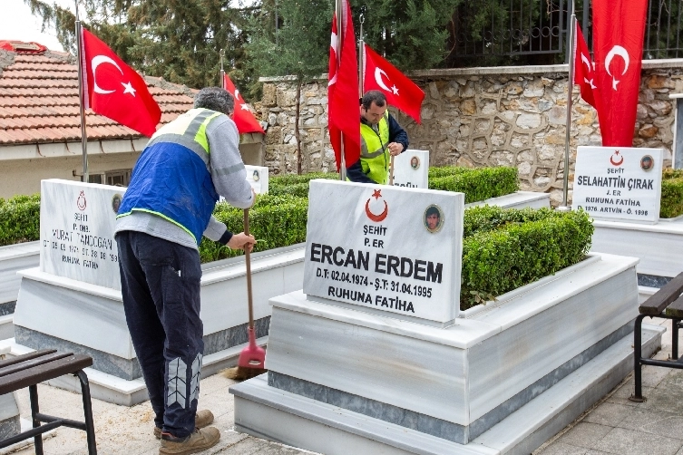 Pınarbaşı Şehitliği başta olmak üzere 17 ilçedeki şehitlikleri titizlikle temizleyen ekipler, 18 Mart Çanakkale Zaferi’nde aziz şehitlerin hatıralarına yakışır şekilde, şehitlikleri ziyarete hazır hale getirdi.