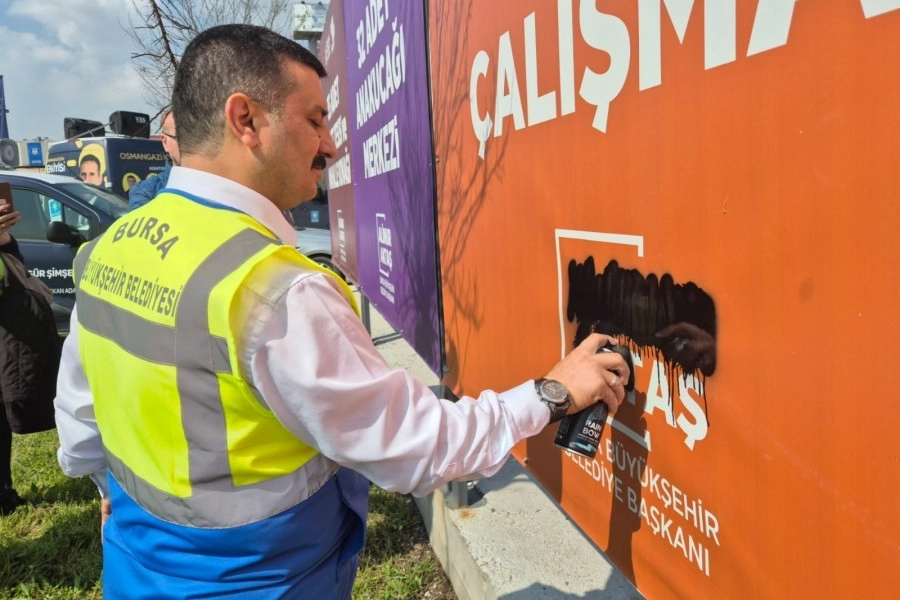 Yerel seçim sürecinde Cumhurbaşkanı Recep Tayyip Erdoğan tarafından yeniden aday gösterilen Bursa Büyükşehir Belediye Başkanı Alinur Aktaş’ın 6 yıllık süreçte Bursa’da hayata geçirdiği hizmetleri ve projelerini içeren tanıtım tabelalarına İYİ Parti Büyükşehir Belediye Başkan adayı Selçuk Türkoğlu ve beraberindeki partililer tarafından 17 Mart 2024 Pazar günü sprey boya ile karalandı.