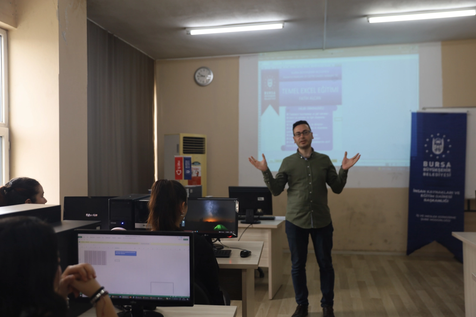 4 gün süren eğitimlerde, Büyükşehir Belediyesi Eğitmeni Fatih Alcan tarafından gençlere Excel ile ilgili temel bilgiler öğretildi.