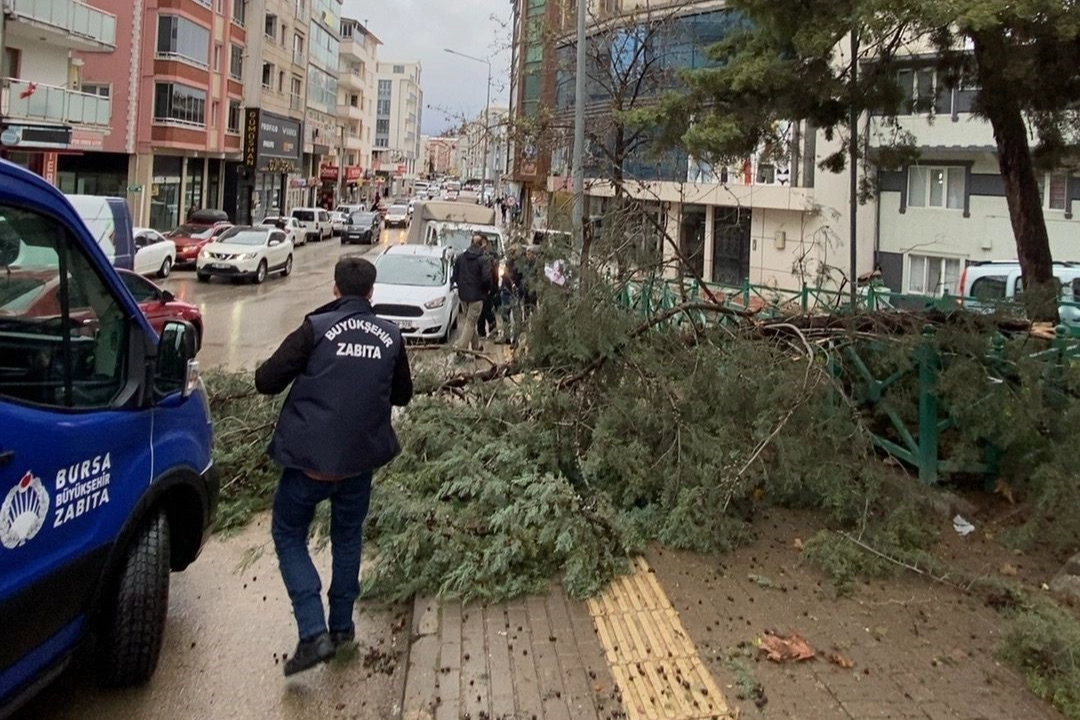 Bursa’da saatte 120 kilometre hıza ulaşan şiddetli rüzgâr, kent genelinde çeşitli olumsuzluklara neden oldu.