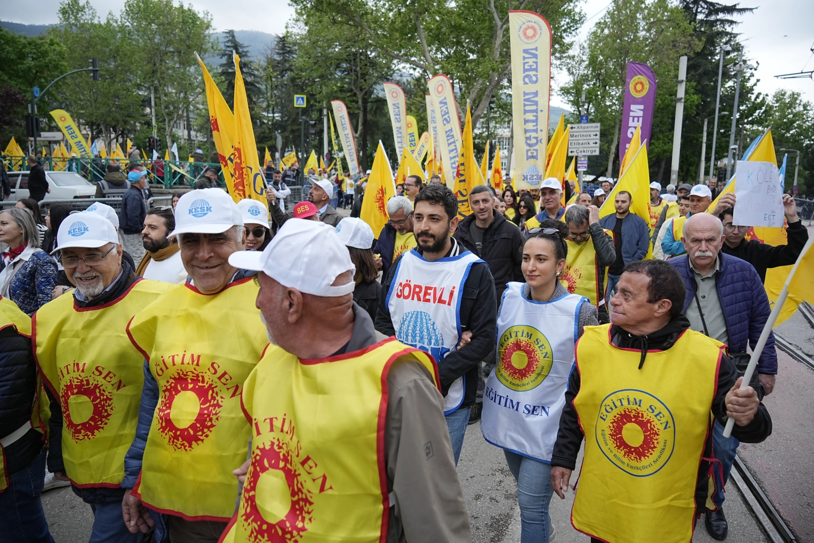 1 Mayıs Emek ve Dayanışma Günü'nde eski stadyum önünde toplanan binlerce işçi, öğrenci, sendika üyelerı, sivil toplum kuruluşu ve siyasi parti temsilcileri, ellerindeki pankartlarla sloganlar atarak Darmstad Caddesi'nden Kent Meydanı'na yürüyüşe geçti.