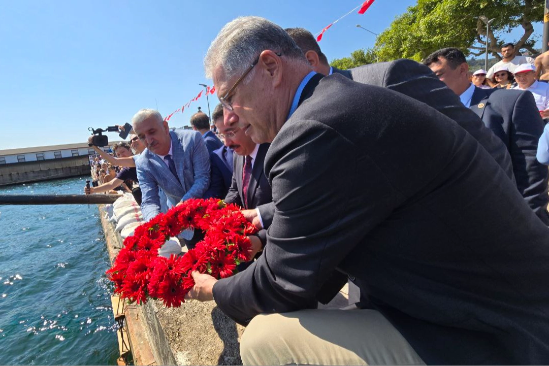 Katılımcılar, törenin ardından kortej eşliğinde Hükümet Konağı önüne yürüdü, eniz şehitleri anısına suya çelenk bırakıldı.