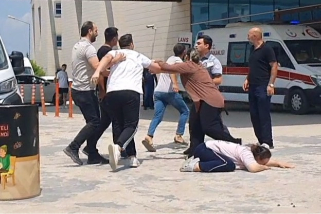 Olayın acısını yaşayan bebeğin annesi ve ailesi, babanın ailesine saldırdı. Aileler arasındaki sandalye, masa ve yumruklu kavga amatör kameraya saniye saniye yansıdı.