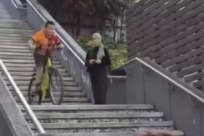 Merdivenlerden bisikletiyle sorunsuz şekilde inen çocuk, izleyenlere hem heyecan dolu anlar yaşattı hem de büyük takdir topladı.