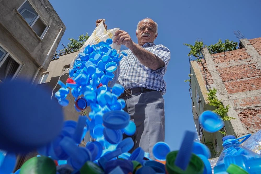 2011 yılında fabrikada çalıştığı işinden emekli olmasının ardından sokak sokak gezerek çöplerde bulduğu kapakları toplamaya başlayan Gökçe, bunları geri dönüşüm merkezlerine sattı.