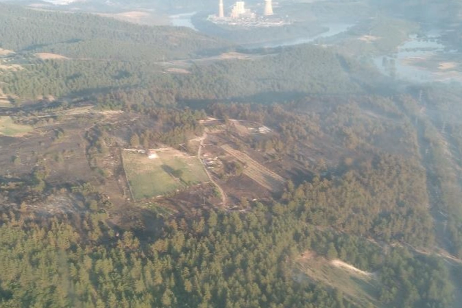 Sabahın ilk ışıklarıyla, havadan çekilen görüntülerde, çam ormanlarının bir kısmının küle döndüğü görüldü.