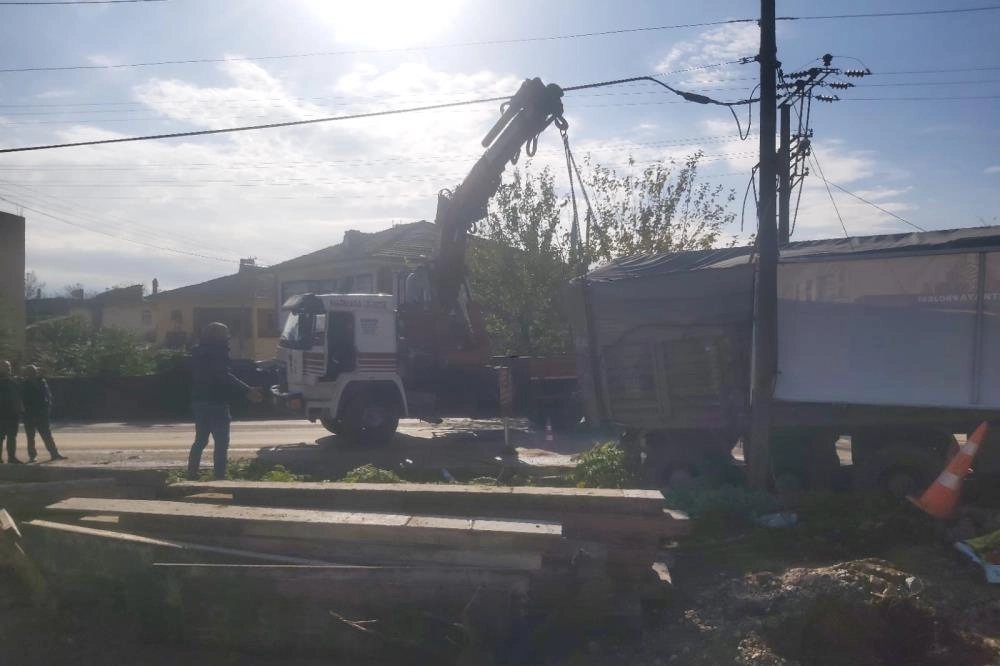 Vinç ile bağlanan tır, uzun uğraşlar sonucu düştüğü kanaldan kurtarıldı. Kısa süreliğine araç trafiğine kapanan yol, tırın kurtarılmasının ardından yeniden açıldı.