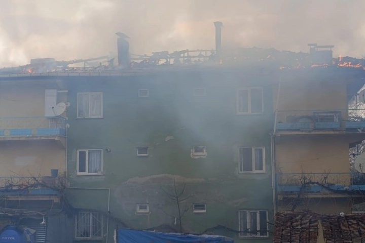İtfaiye ekiplerinin müdahalesiyle söndürülen yangında çatıda hasar oluştu.