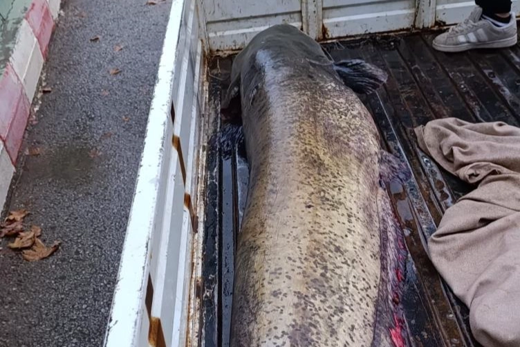 Dev yayın balığı daha sonra 4 kişi tarafından güçlükle araca yüklenebildi.